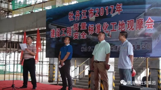 2017年7月14日上午九點,由市建設局組織的“牡丹江市質量、安全標準化現(xiàn)場觀摩交流會” 在我公司承建的恒豐紙業(yè)職工文化活動中心項目施工現(xiàn)場隆重召開。我市及所轄外市縣安全監(jiān)察站、工程質量監(jiān)督、房地產(chǎn)開發(fā)企業(yè)、監(jiān)理單位、施工單位及牡市內在建項目的管理人員,共計四百多人參加了此次觀摩會。