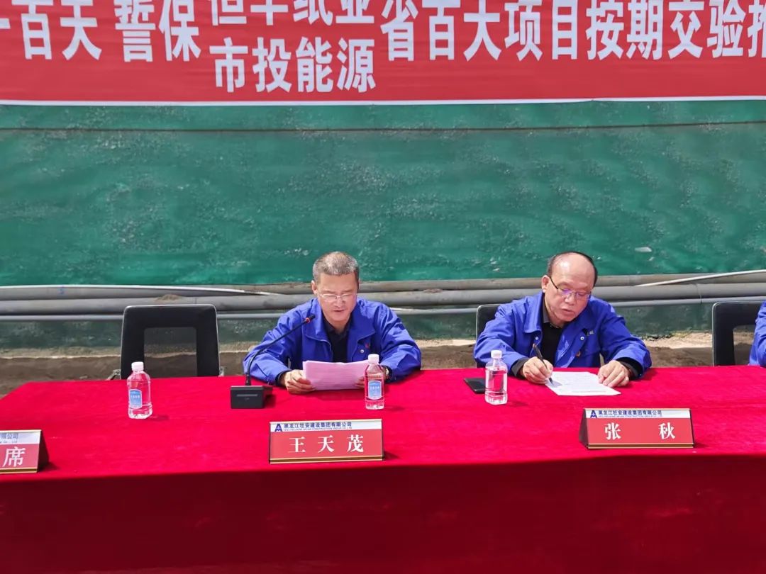 6月15日上午9時,牡安集團(tuán)省百大項(xiàng)目按期交驗(yàn)推進(jìn)大會在恒豐紙業(yè)特種涂布紙項(xiàng)目場區(qū)內(nèi)順利召開。此次大會由副總經(jīng)理劉群主持,集團(tuán)總經(jīng)理張秋、副總經(jīng)理王天茂、張新福、杜鳳艷、集團(tuán)總部各部門主要負(fù)責(zé)人及本埠內(nèi)各項(xiàng)目部成員出席會議。